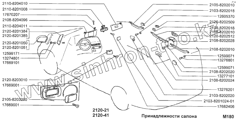Каталог запасных частей к технике: ВАЗ-2120 (Надежда). Принадлежности салона