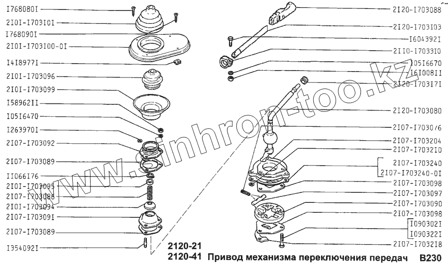 Каталог запасных частей к технике: ВАЗ-2120 (Надежда). Привод механизма переключения передач