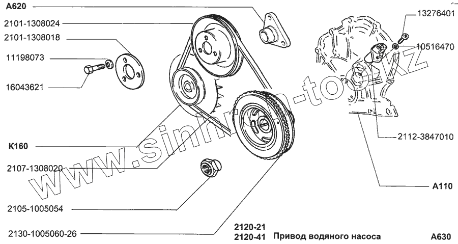 Каталог запасных частей к технике: ВАЗ-2120 (Надежда). Привод водяного насоса