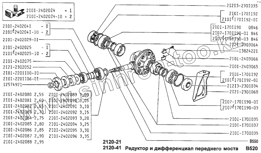 Каталог запасных частей к технике: ВАЗ-2120 (Надежда). Редуктор и дифференциал переднего моста