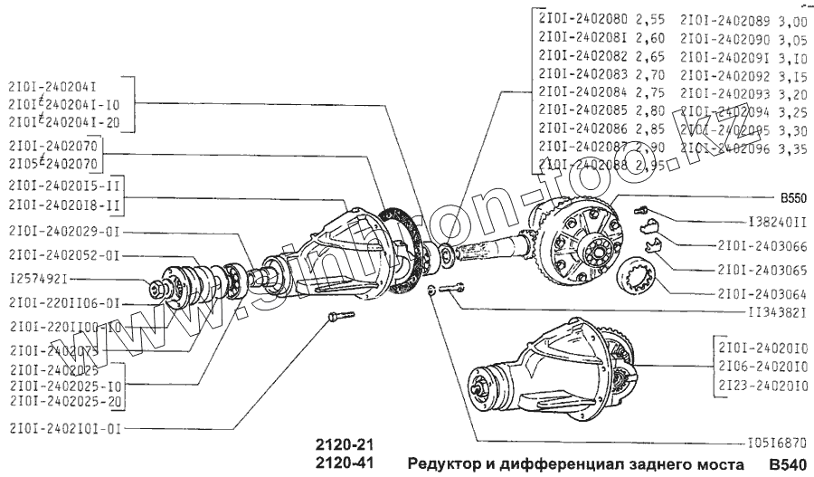 Каталог запасных частей к технике: ВАЗ-2120 (Надежда). Редуктор и дифференциал заднего моста