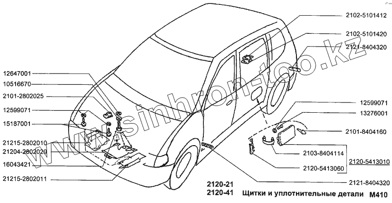 Каталог запасных частей к технике: ВАЗ-2120 (Надежда). Щитки и уплотнительные детали