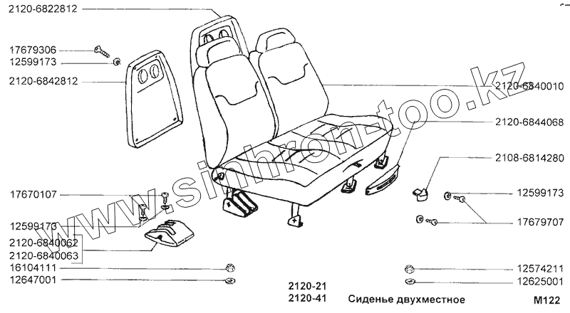Каталог запасных частей к технике: ВАЗ-2120 (Надежда). Сиденье двухместное