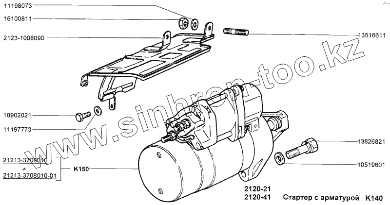 Каталог запасных частей к технике: ВАЗ-2120 (Надежда). Стартер с арматурой