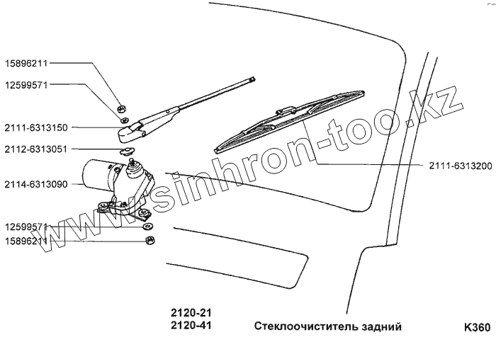 Каталог запасных частей к технике: ВАЗ-2120 (Надежда). Стеклоочиститель задний