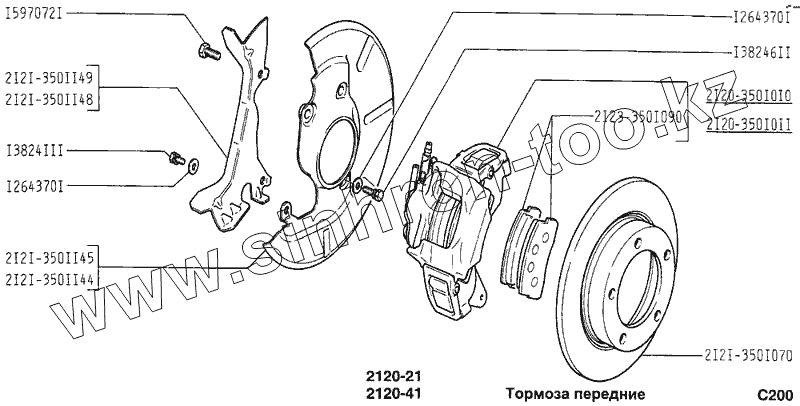 Каталог запасных частей к технике: ВАЗ-2120 (Надежда). Тормоза передние