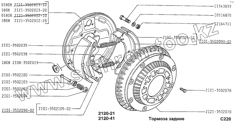 Каталог запасных частей к технике: ВАЗ-2120 (Надежда). Тормоза задние