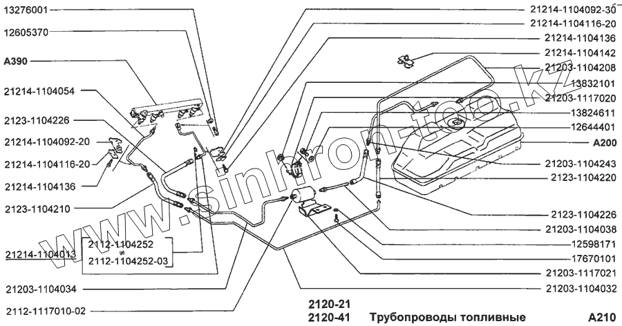 Каталог запасных частей к технике: ВАЗ-2120 (Надежда). Трубопроводы топливные
