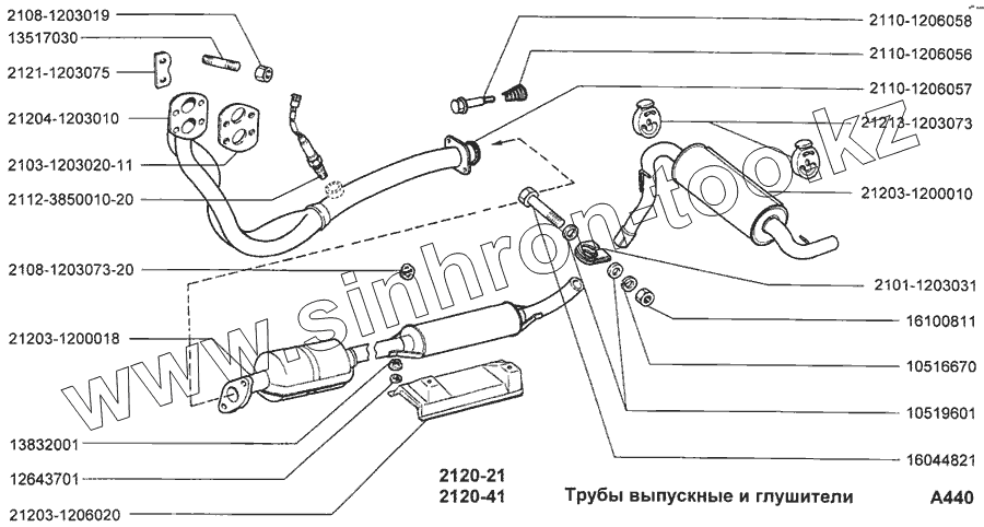 Каталог запасных частей к технике: ВАЗ-2120 (Надежда). Трубы выпускные и глушители