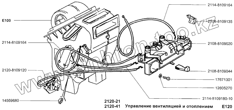 Каталог запасных частей к технике: ВАЗ-2120 (Надежда). Управление вентиляцией и отоплением