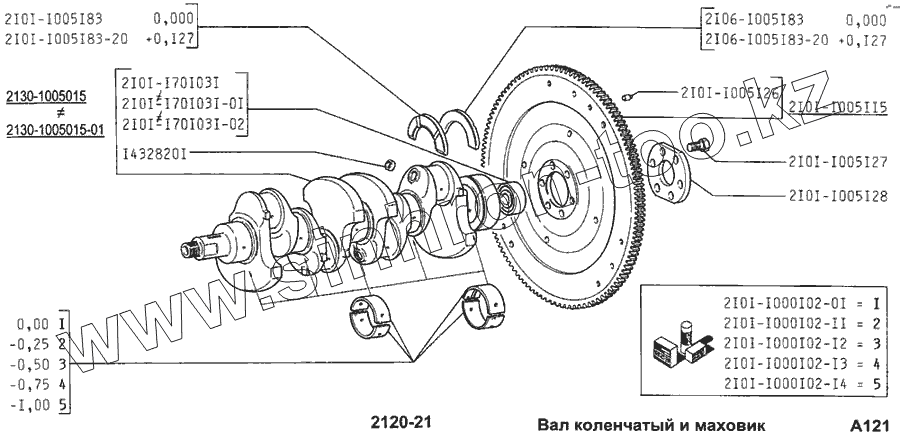 Каталог запасных частей к технике: ВАЗ-2120 (Надежда). Вал коленчатый и маховик