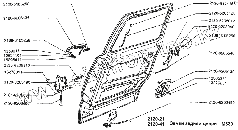 Каталог запасных частей к технике: ВАЗ-2120 (Надежда). Замки задней двери