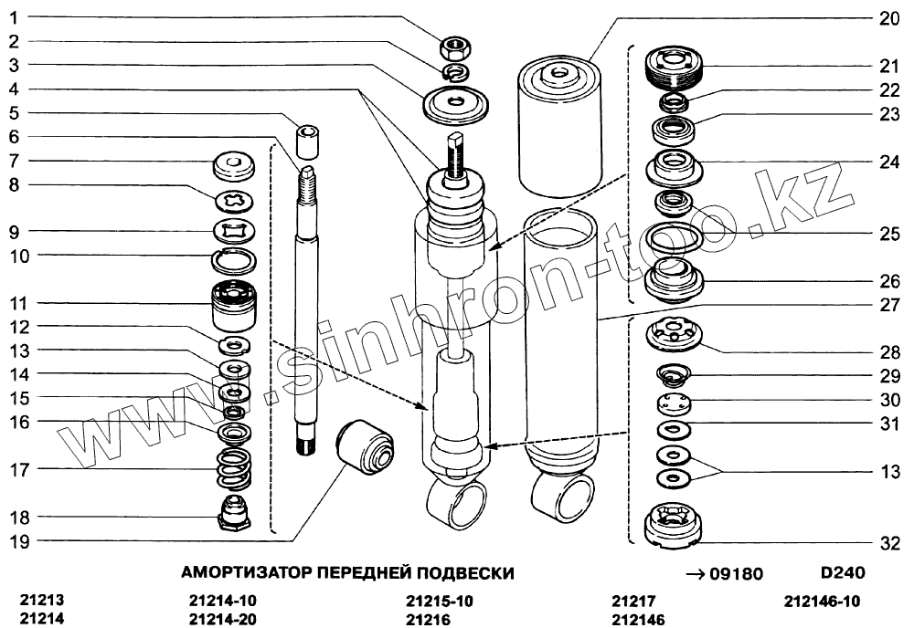 Каталог запасных частей к технике: ВАЗ-21213-214i (NIVA). Амортизатор передней подвески