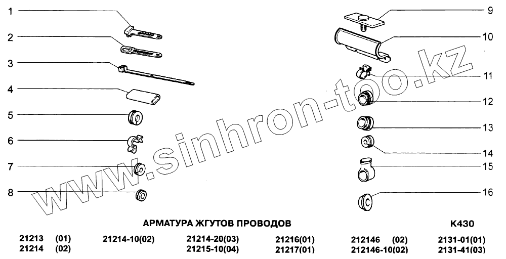 Каталог запасных частей к технике: ВАЗ-21213-214i (NIVA). Арматура жгутов проводов