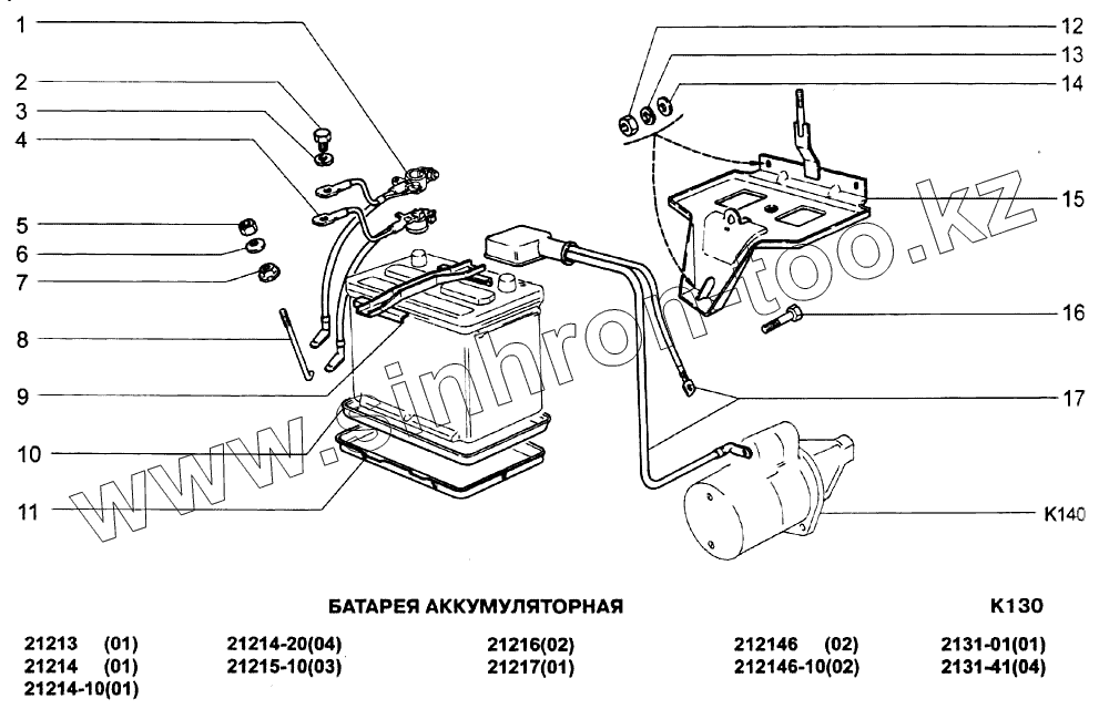 Каталог запасных частей к технике: ВАЗ-21213-214i (NIVA). Батарея аккумуляторная