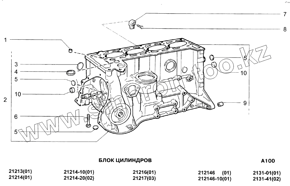 Каталог запасных частей к технике: ВАЗ-21213-214i (NIVA). Блок цилиндров