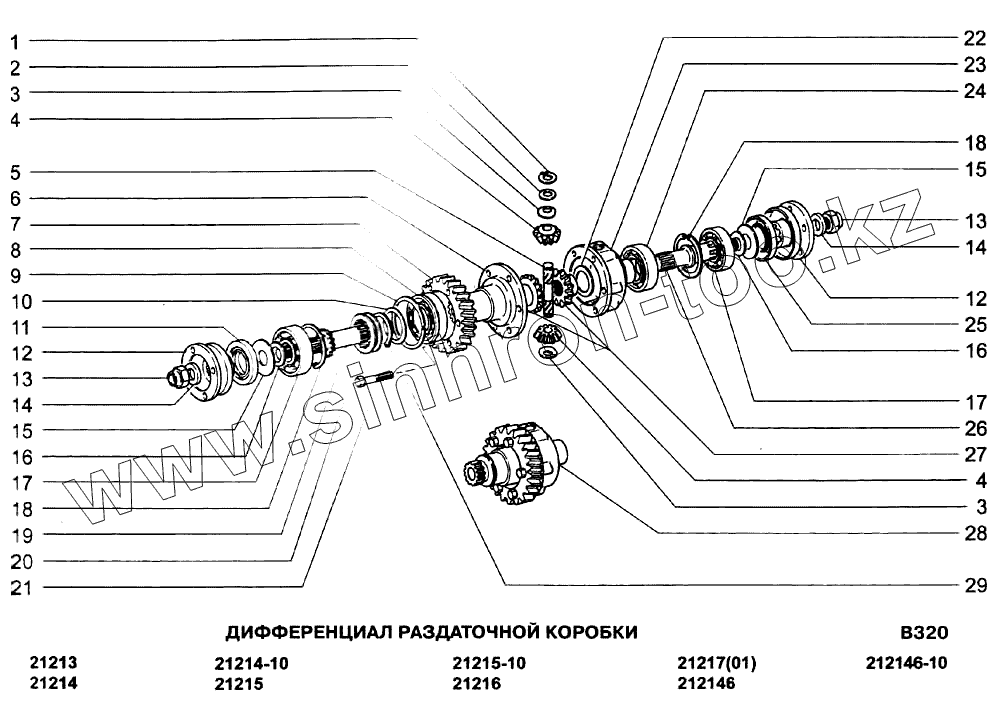Каталог запасных частей к технике: ВАЗ-21213-214i (NIVA). Дифференциал раздаточной коробки