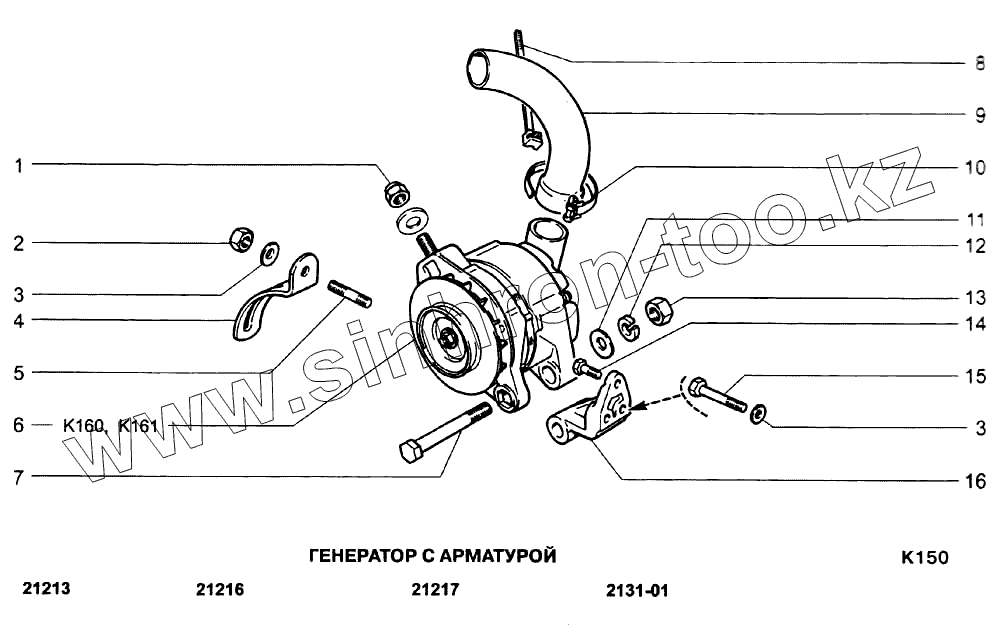 Каталог запасных частей к технике: ВАЗ-21213-214i (NIVA). Генератор с арматурой