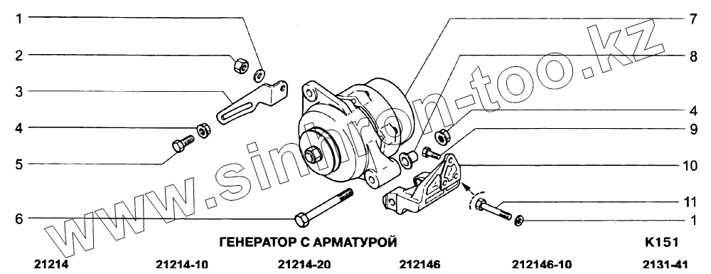 Каталог запасных частей к технике: ВАЗ-21213-214i (NIVA). Генератор с арматурой