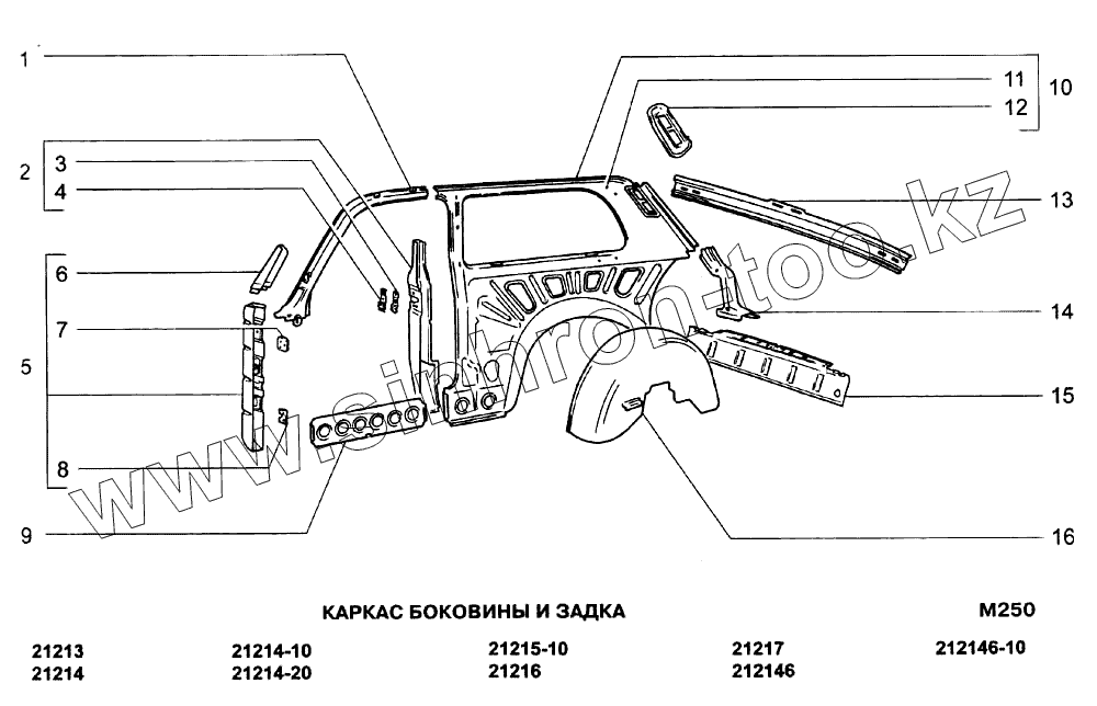 Каталог запасных частей к технике: ВАЗ-21213-214i (NIVA). Каркас боковины и задка
