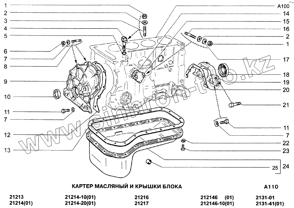 Каталог запасных частей к технике: ВАЗ-21213-214i (NIVA). Картер масляный и крышки блока