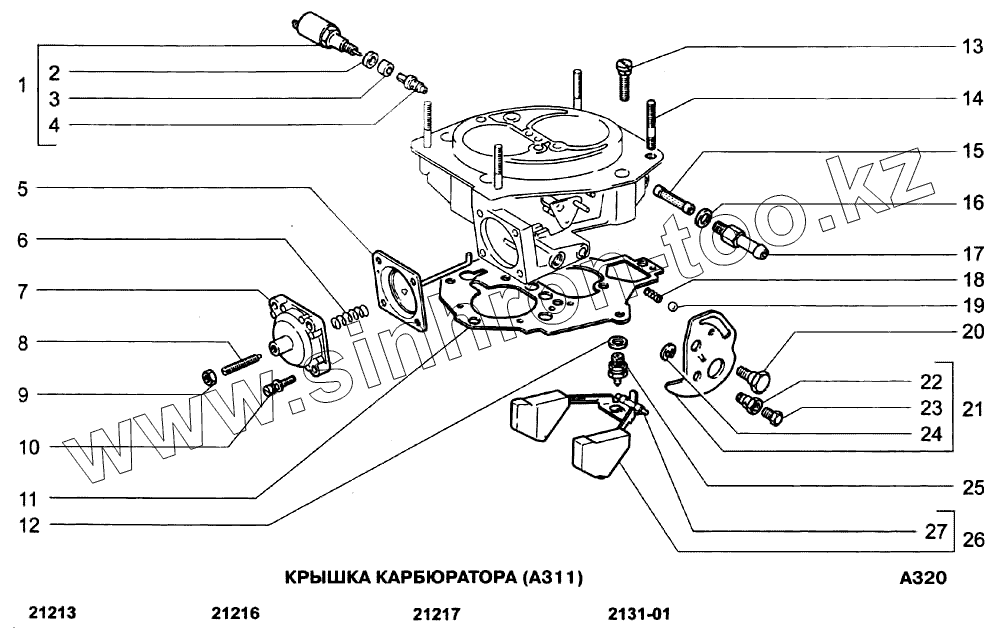 Каталог запасных частей к технике: ВАЗ-21213-214i (NIVA). Крышка карбюратора (A311)