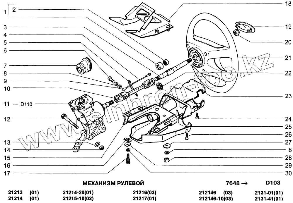 Каталог запасных частей к технике: ВАЗ-21213-214i (NIVA). Механизм рулевой