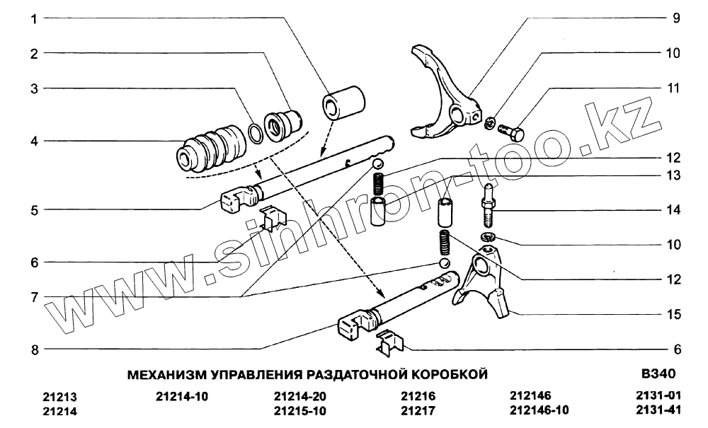 Каталог запасных частей к технике: ВАЗ-21213-214i (NIVA). Механизм управления раздаточной коробки