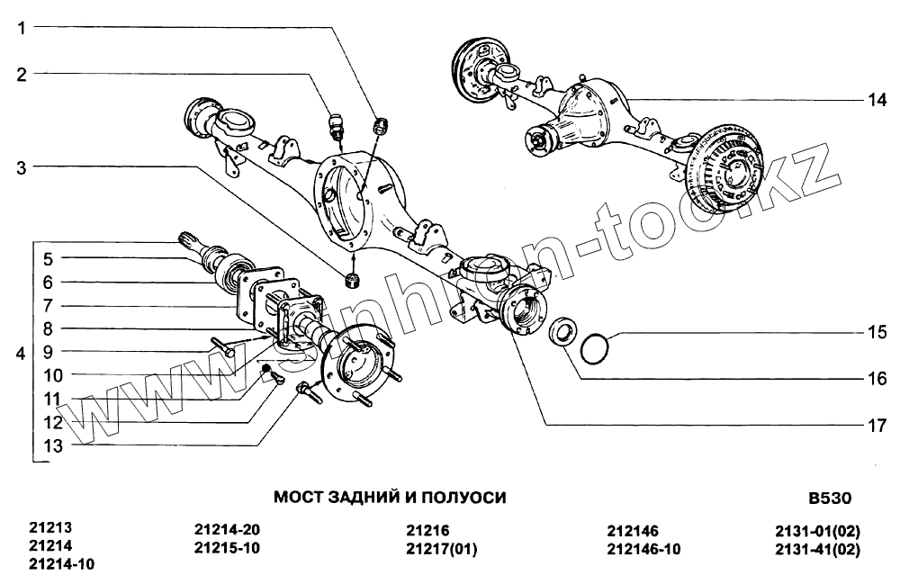 Каталог запасных частей к технике: ВАЗ-21213-214i (NIVA). Мост задний и полуоси