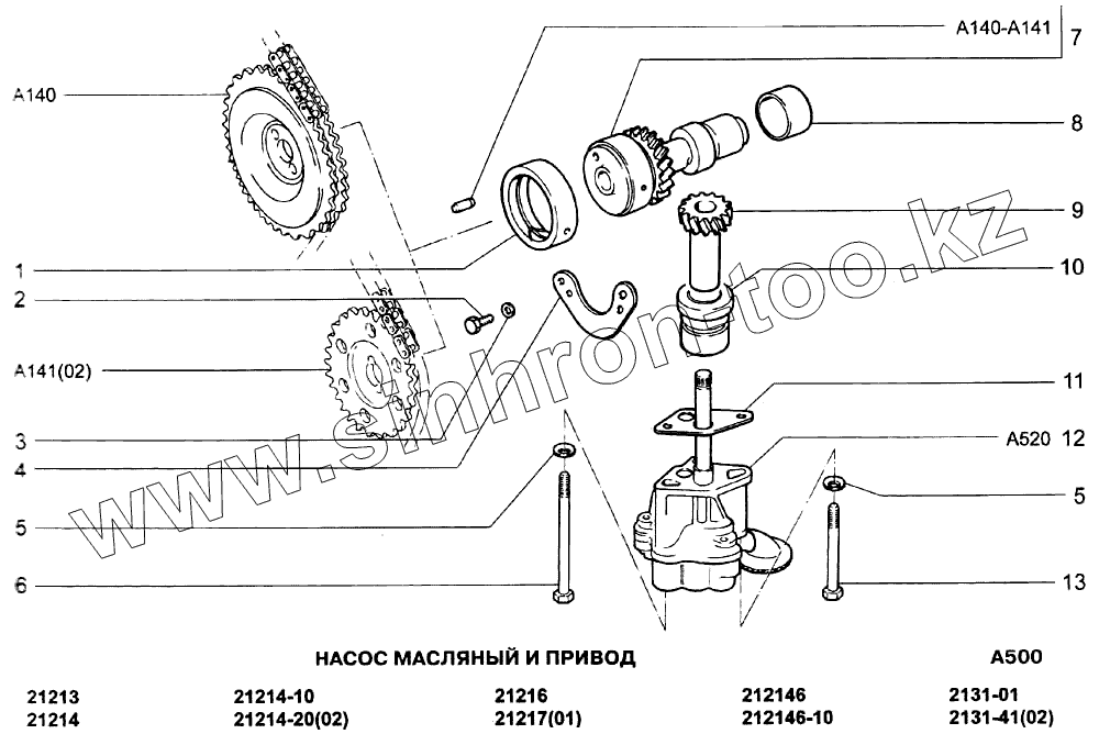 Каталог запасных частей к технике: ВАЗ-21213-214i (NIVA). Насос масляный и привод