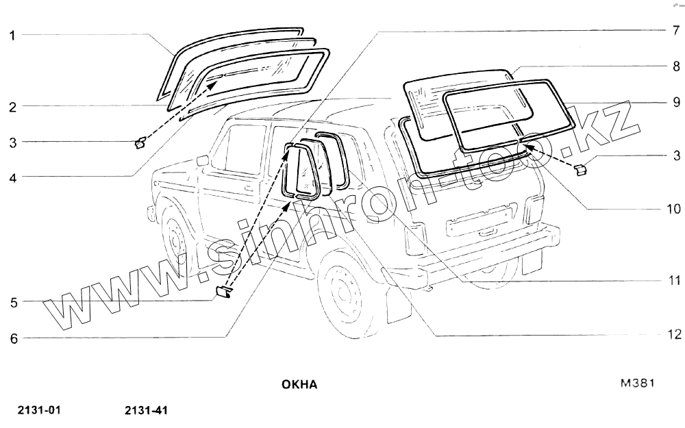 Каталог запасных частей к технике: ВАЗ-21213-214i (NIVA). Окна