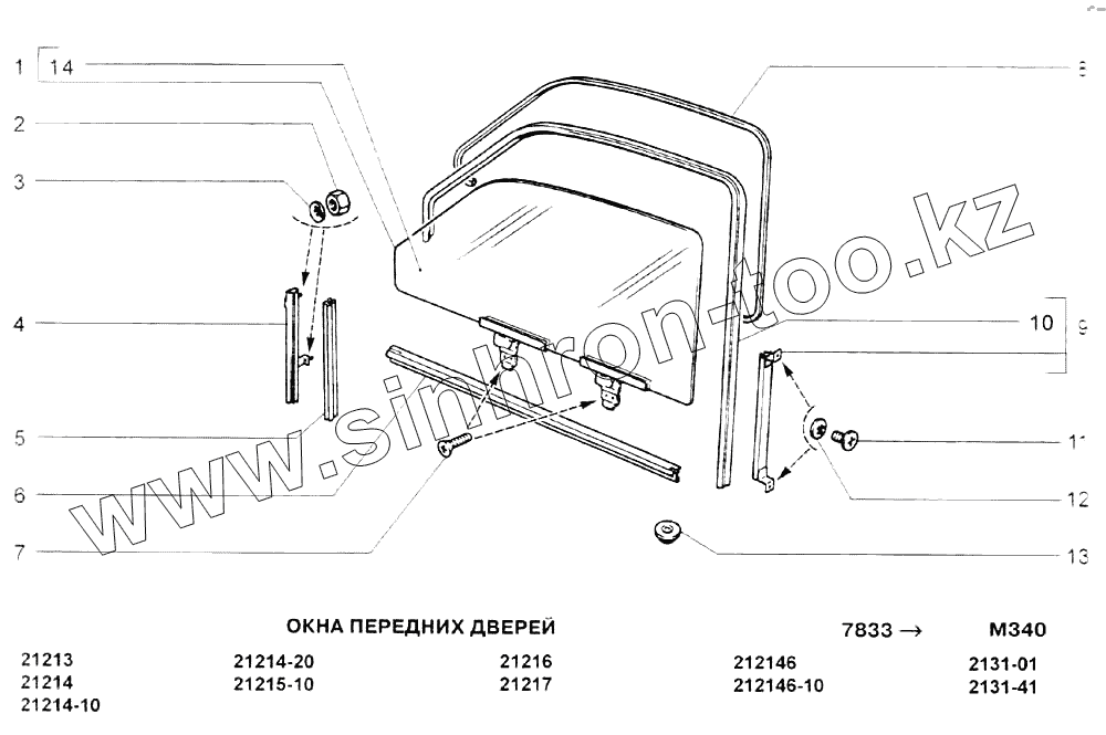 Каталог запасных частей к технике: ВАЗ-21213-214i (NIVA). Окна передних дверей