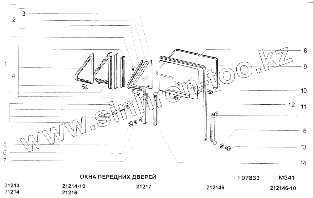 Каталог запасных частей к технике: ВАЗ-21213-214i (NIVA). Окна передних дверей