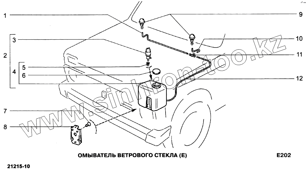 Каталог запасных частей к технике: ВАЗ-21213-214i (NIVA). Омыватель ветрового стекла (Е)