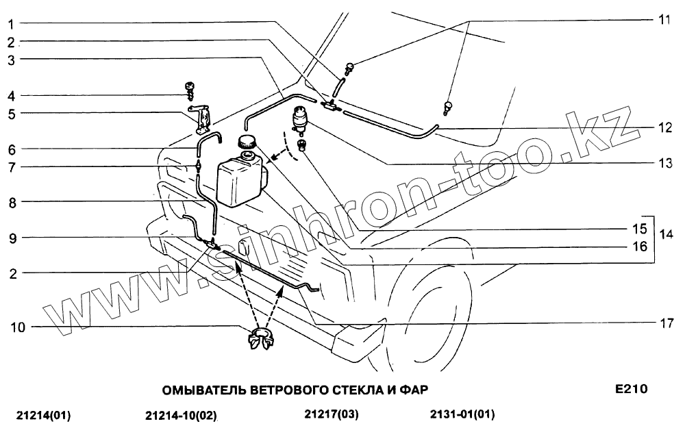 Каталог запасных частей к технике: ВАЗ-21213-214i (NIVA). Омыватель ветрового стекла и фар
