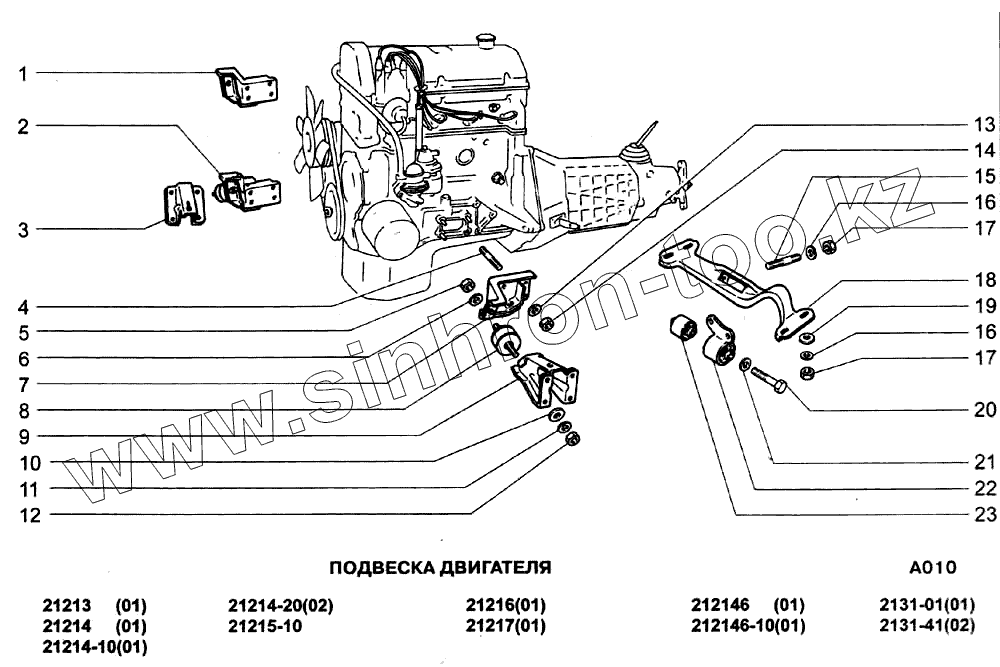 Каталог запасных частей к технике: ВАЗ-21213-214i (NIVA). Подвеска двигателя