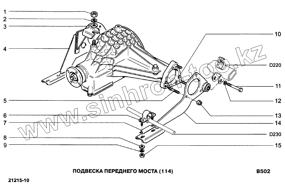 Каталог запасных частей к технике: ВАЗ-21213-214i (NIVA). Подвеска переднего моста (114)