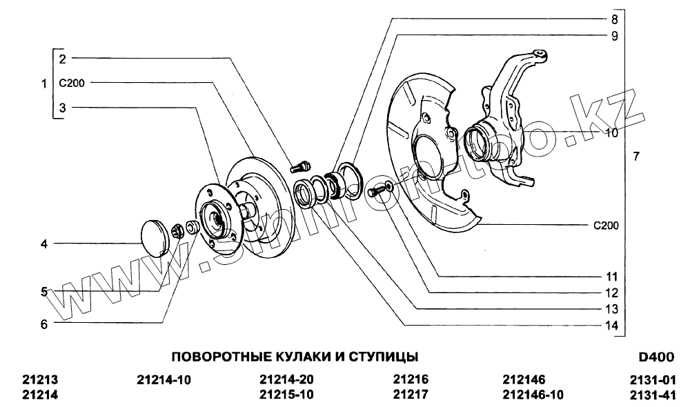 Каталог запасных частей к технике: ВАЗ-21213-214i (NIVA). Поворотные кулаки и ступицы