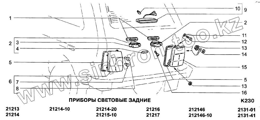 Каталог запасных частей к технике: ВАЗ-21213-214i (NIVA). Приборы световые задние