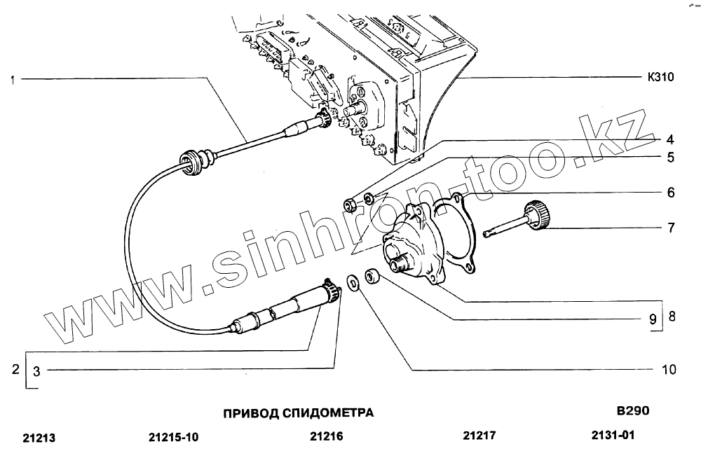 Каталог запасных частей к технике: ВАЗ-21213-214i (NIVA). Привод спидометра