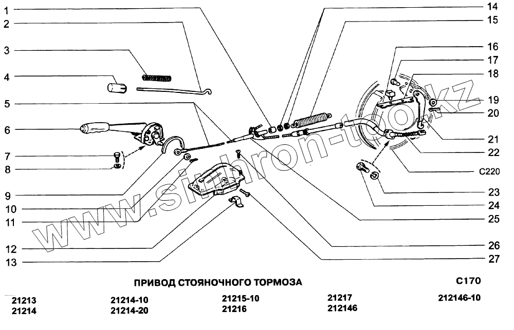 Каталог запасных частей к технике: ВАЗ-21213-214i (NIVA). Привод стояночного тормоза