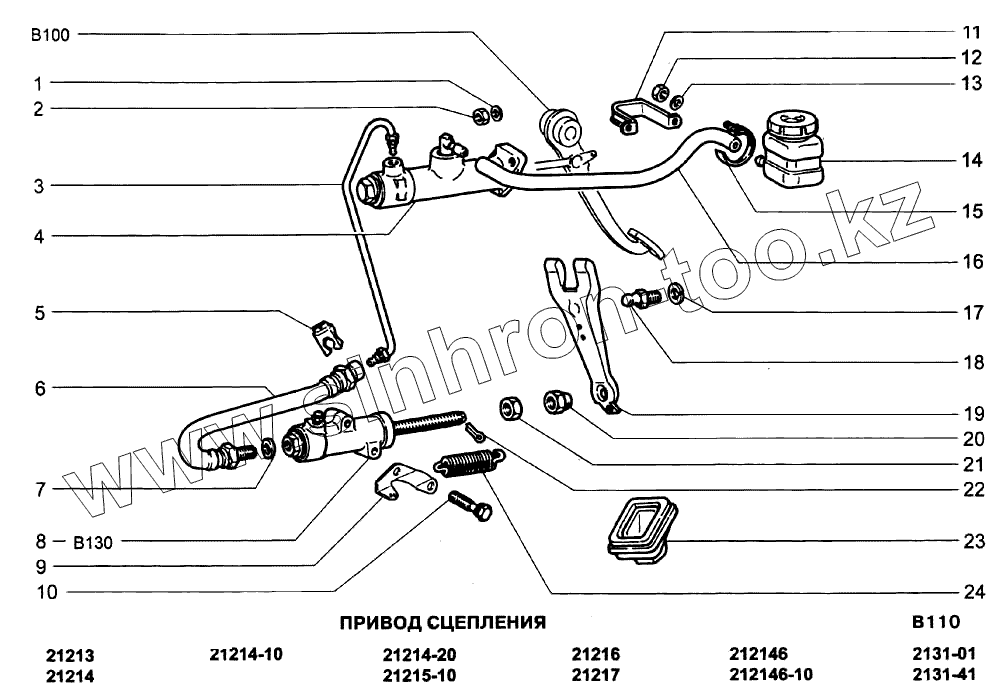 Каталог запасных частей к технике: ВАЗ-21213-214i (NIVA). Привод сцепления