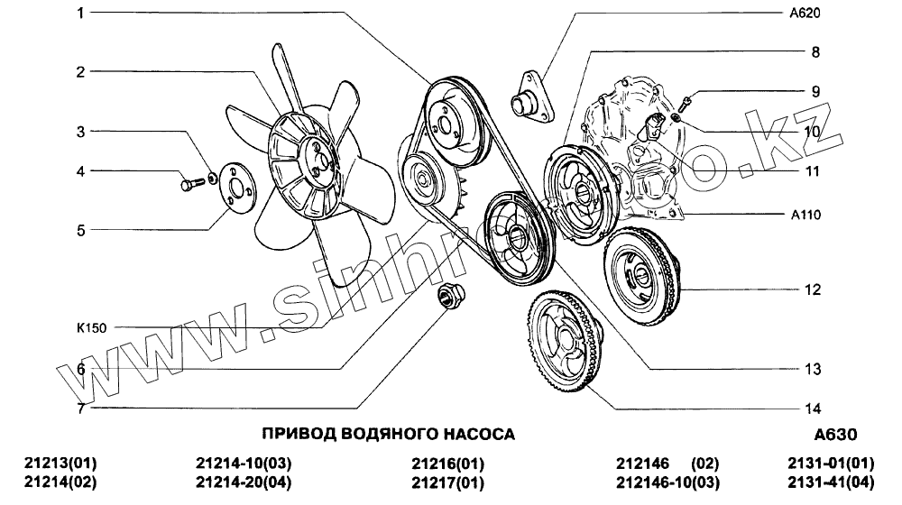 Каталог запасных частей к технике: ВАЗ-21213-214i (NIVA). Привод водяного насоса