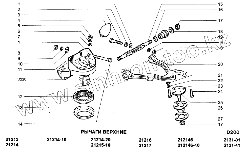 Каталог запасных частей к технике: ВАЗ-21213-214i (NIVA). Рычаги верхние