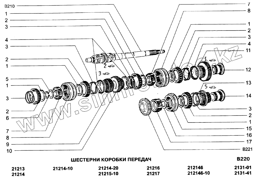 Каталог запасных частей к технике: ВАЗ-21213-214i (NIVA). Шестерни коробки передач
