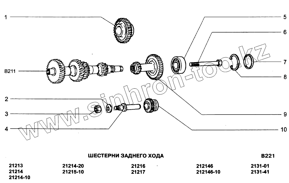 Каталог запасных частей к технике: ВАЗ-21213-214i (NIVA). Шестерни заднего хода