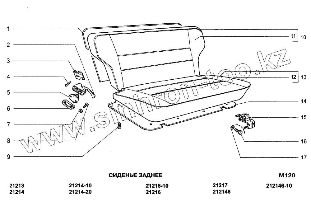 Каталог запасных частей к технике: ВАЗ-21213-214i (NIVA). Сиденье заднее