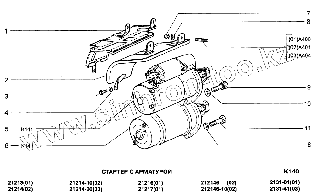 Каталог запасных частей к технике: ВАЗ-21213-214i (NIVA). Стартер с арматурой