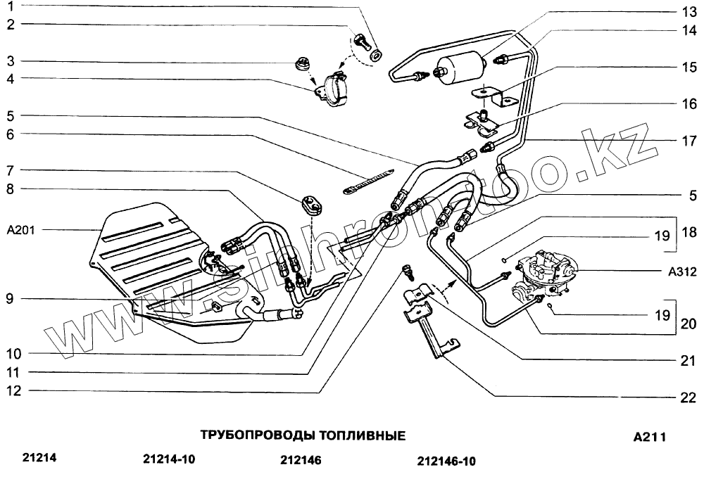Каталог запасных частей к технике: ВАЗ-21213-214i (NIVA). Трубопроводы топливные