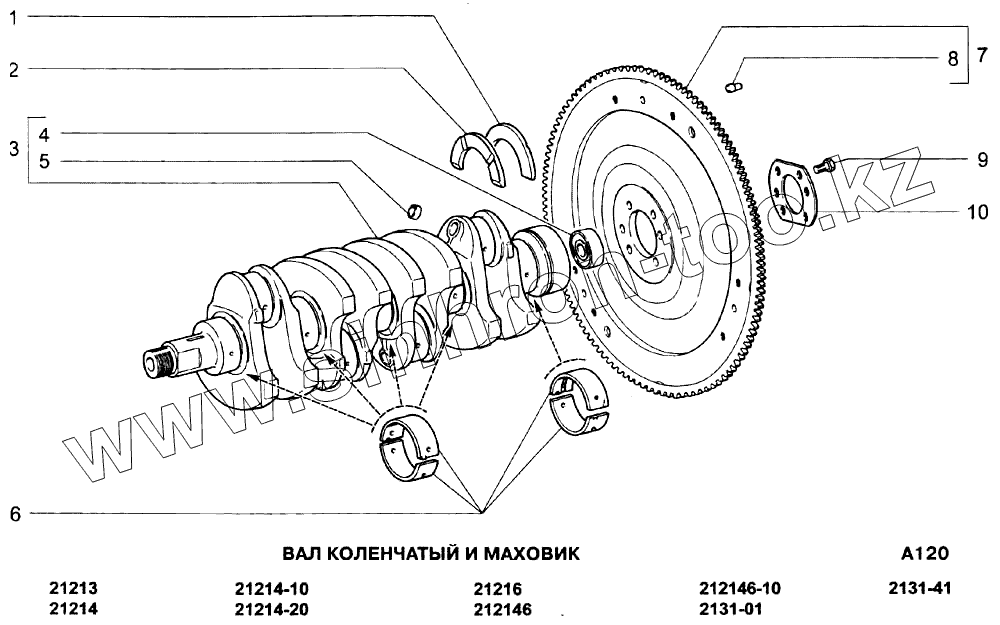 Каталог запасных частей к технике: ВАЗ-21213-214i (NIVA). Вал коленчатый и маховик